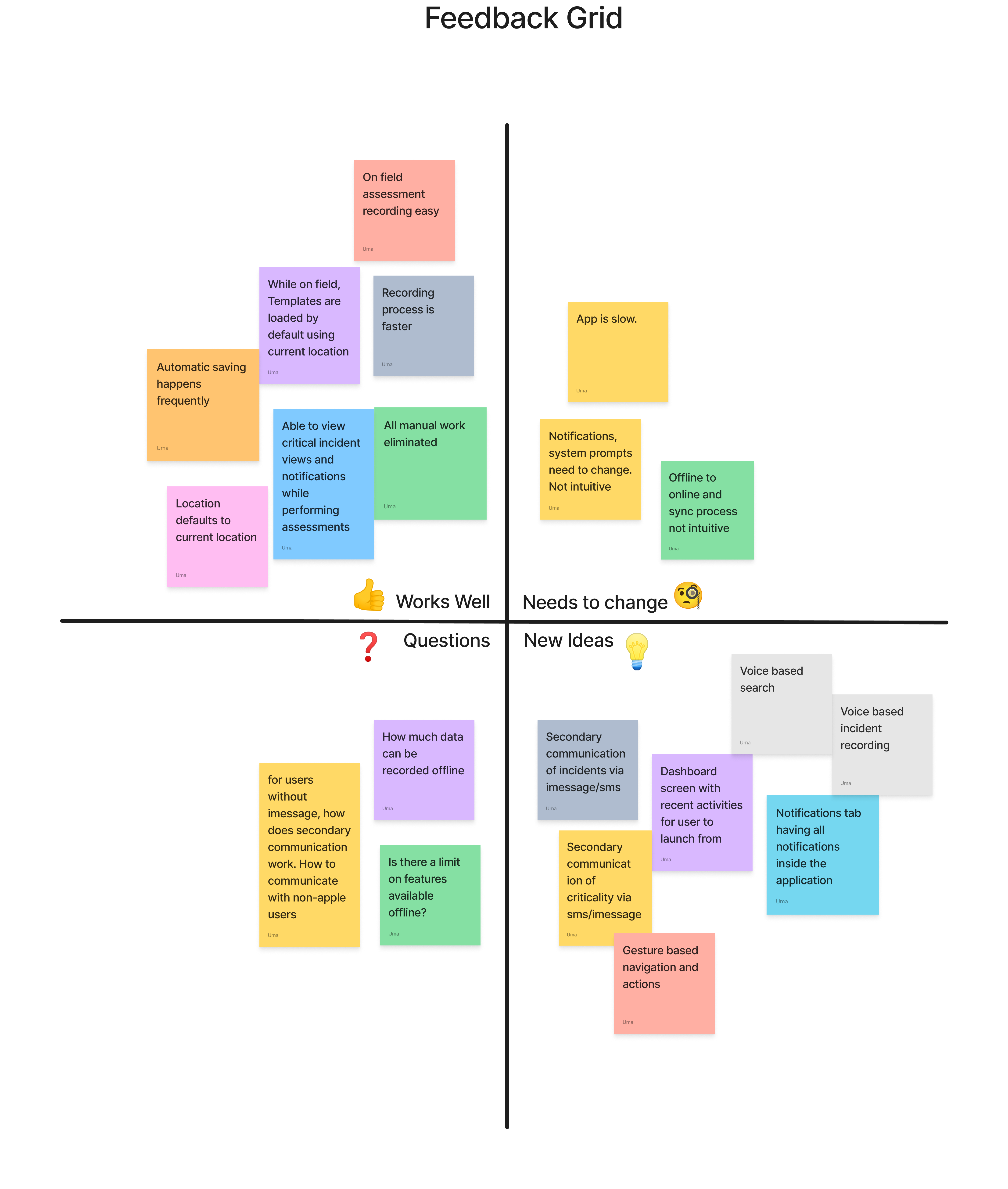 β Works Well | β οΈ Needs to Change | β Questions | π‘ New Ideas |