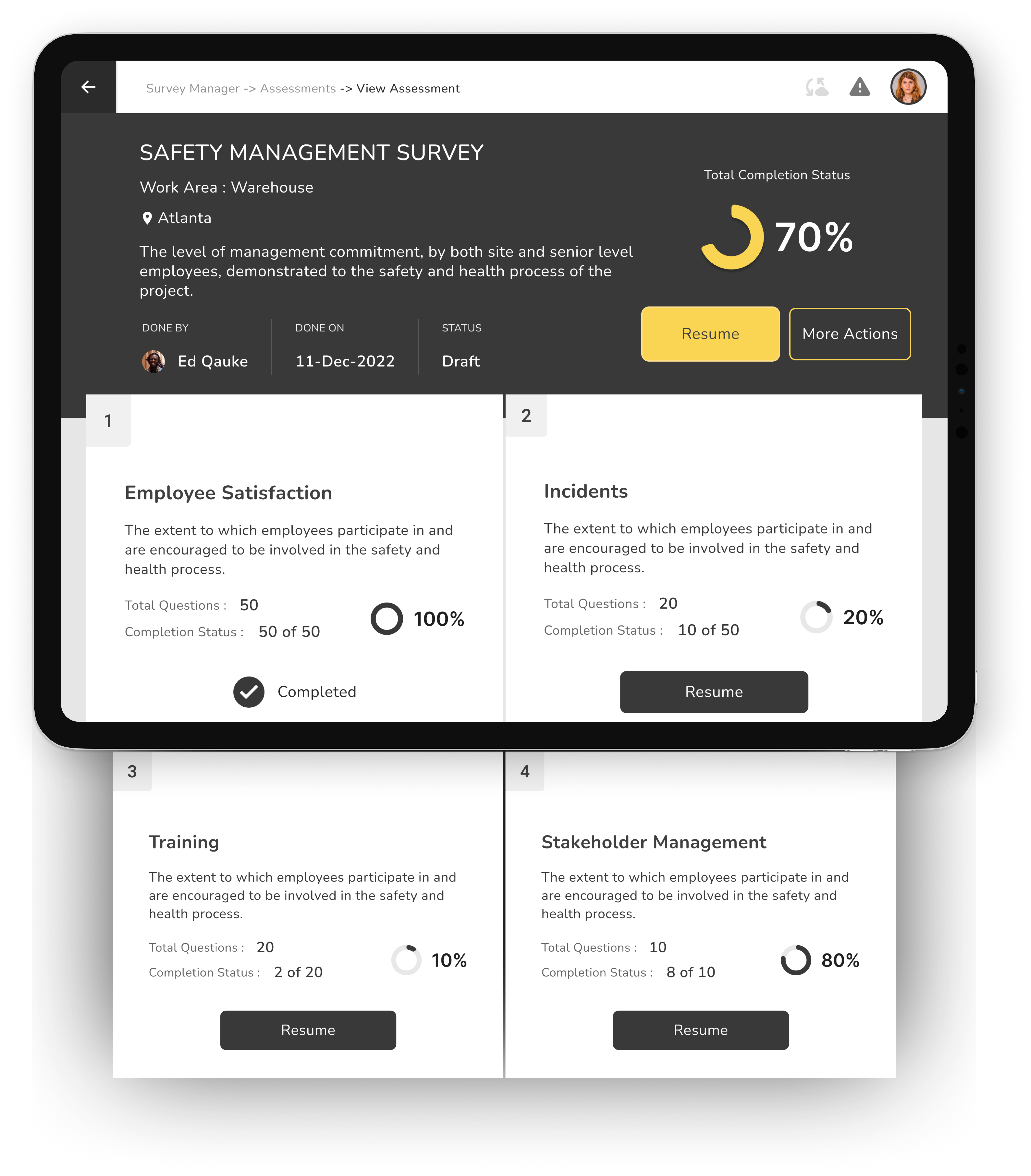 On-field recording is easy and fast Manual work eliminated Templates auto-load based on location Critical incident notifications visible Frequent auto-saving |