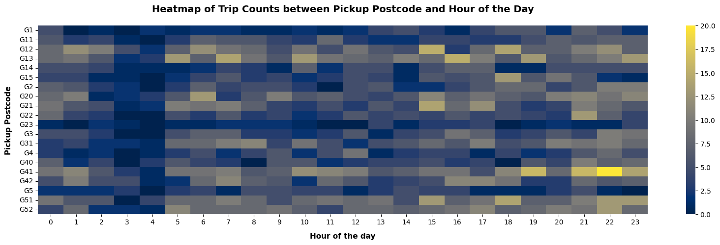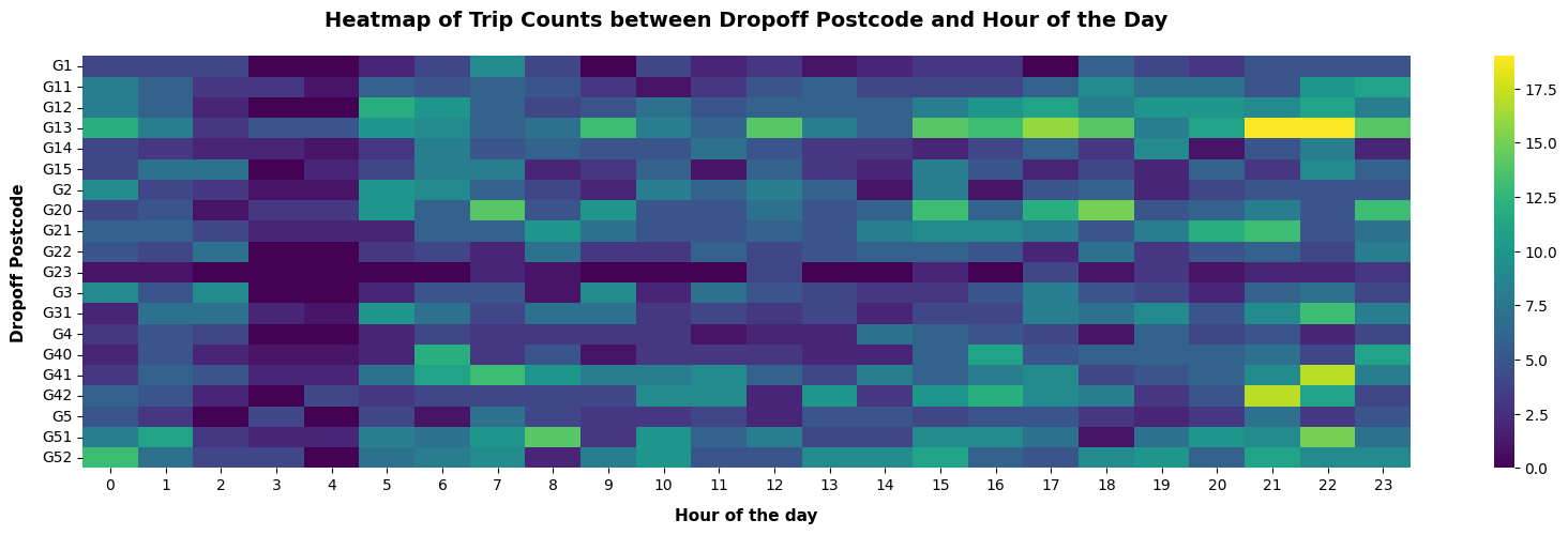 Duration AnalysisDrop-off Postcode vs HourPickup Hour-of-DayTrip Counts by PostcodeFare and Tip AnalysisOutlier AnalysisRevenue per KmAverage Trip Duration