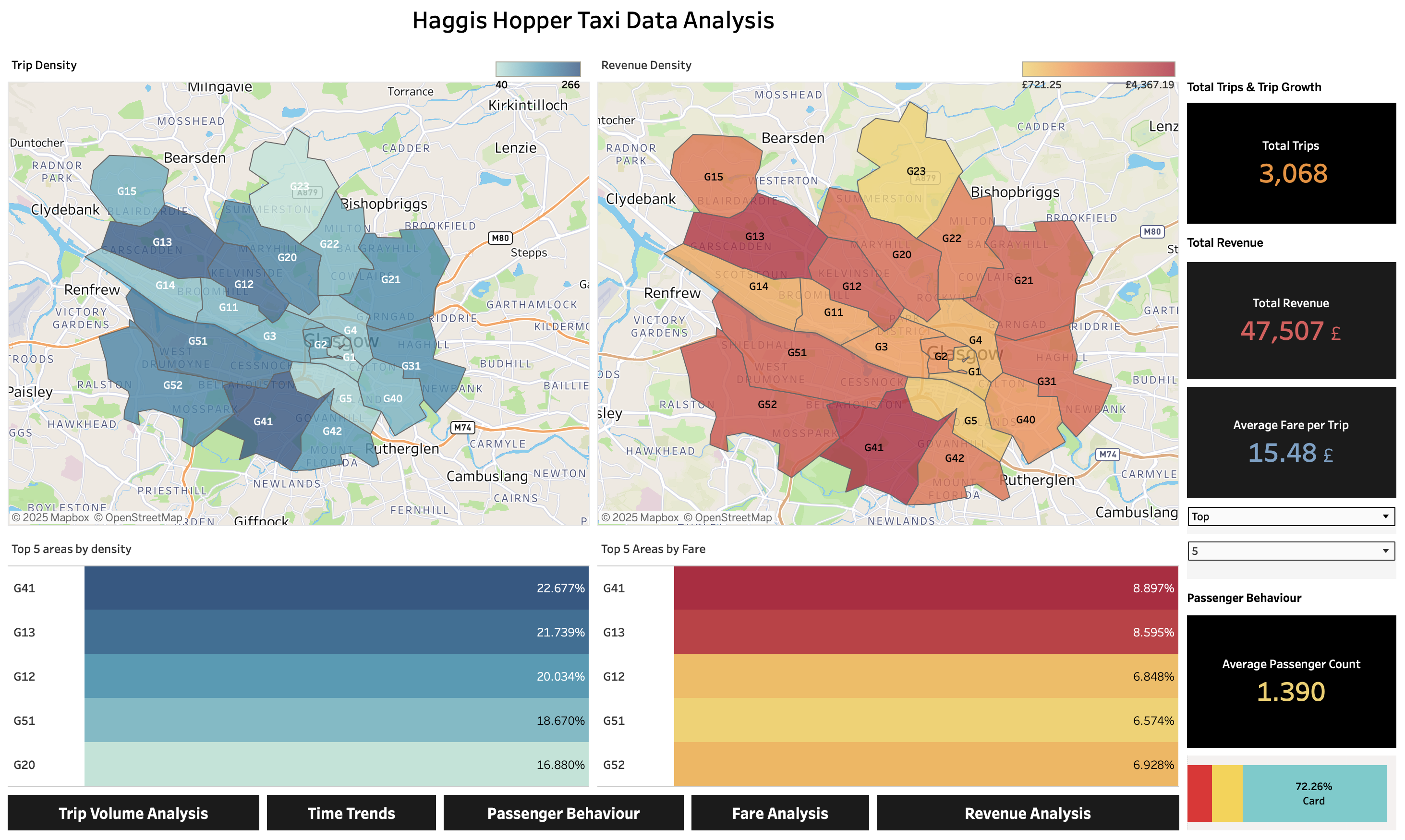 Use Haggis Hopper’s historical trip data to uncover where, when, and how demand fluctuates across Glasgow so the company can allocate its fleet more efficiently, improve passenger experience, and support sustainable growth.
