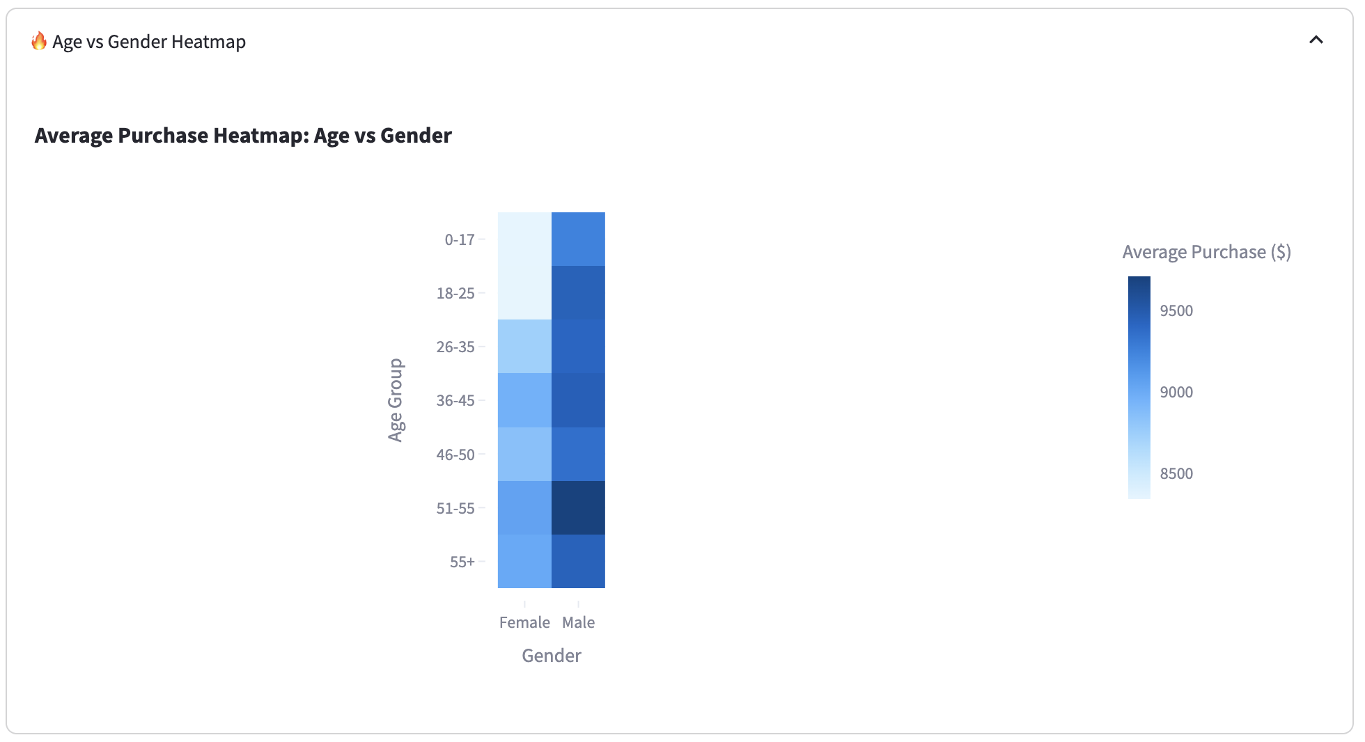 • Age Group Analysis: Identified key demographic segments with highest spending potential